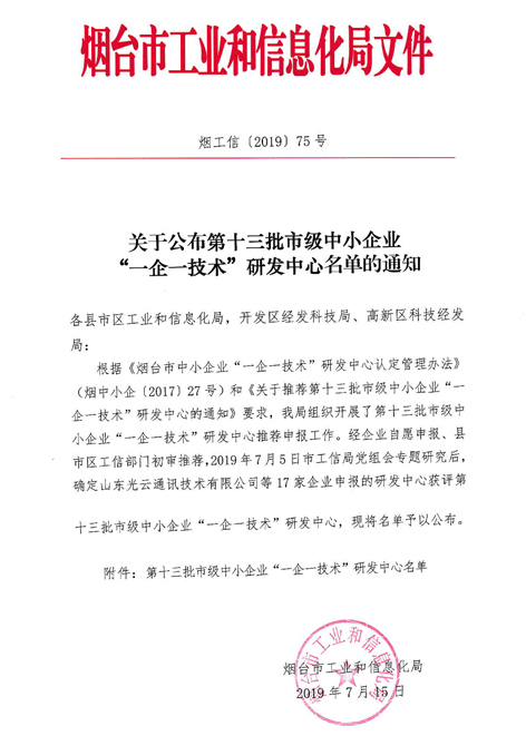近年來,宏田公司堅持創(chuàng)新驅(qū)動發(fā)展理念,加強企業(yè)創(chuàng)新平臺建設,研發(fā)能力和水平不斷提高,榮獲煙臺市"一企一技術(shù)"企業(yè)稱號,使產(chǎn)品的市場競爭能力大大增強。